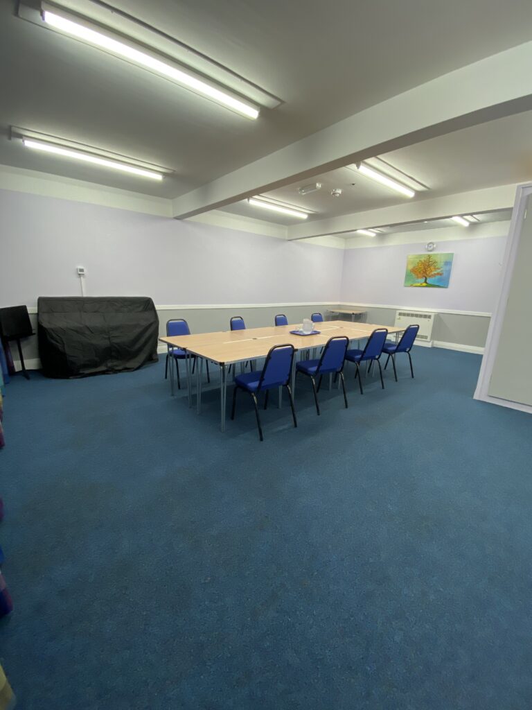The Horrocks room is suitable for groups of up to 20/25 people. The room has its own tables, chairs and piano